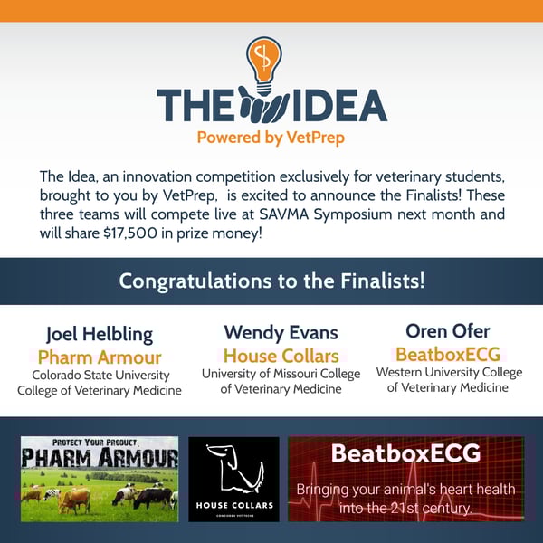 We have blown away by the number of entries in The Idea, Veterinary Student Innovation Competition! Thank you to all teams for submitted your awesome Ideas for consideration. Congratulations to the following teams - our semi-finalists!